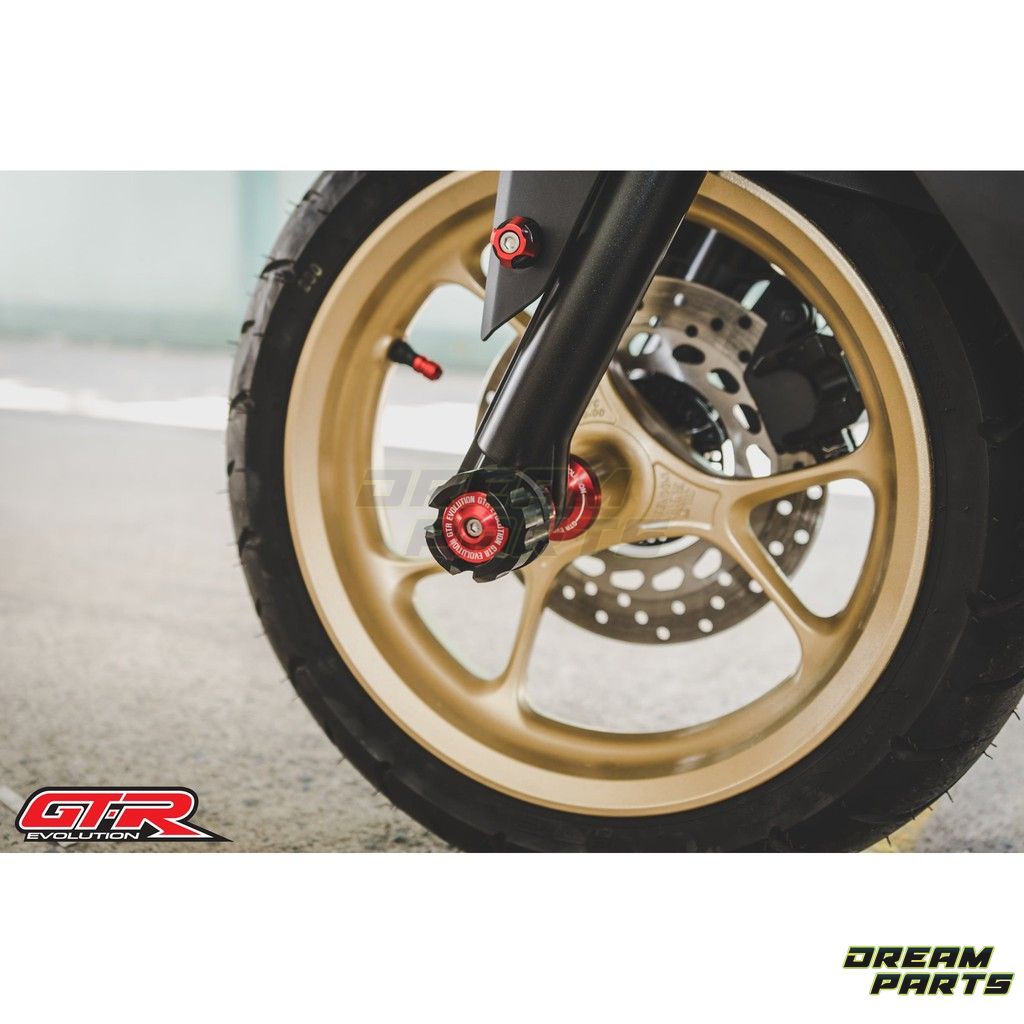 Axes de roue avant/tampons de protections pour Yamaha N-max. Disponibles en 5 coloris.