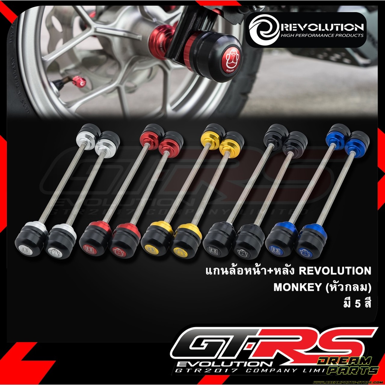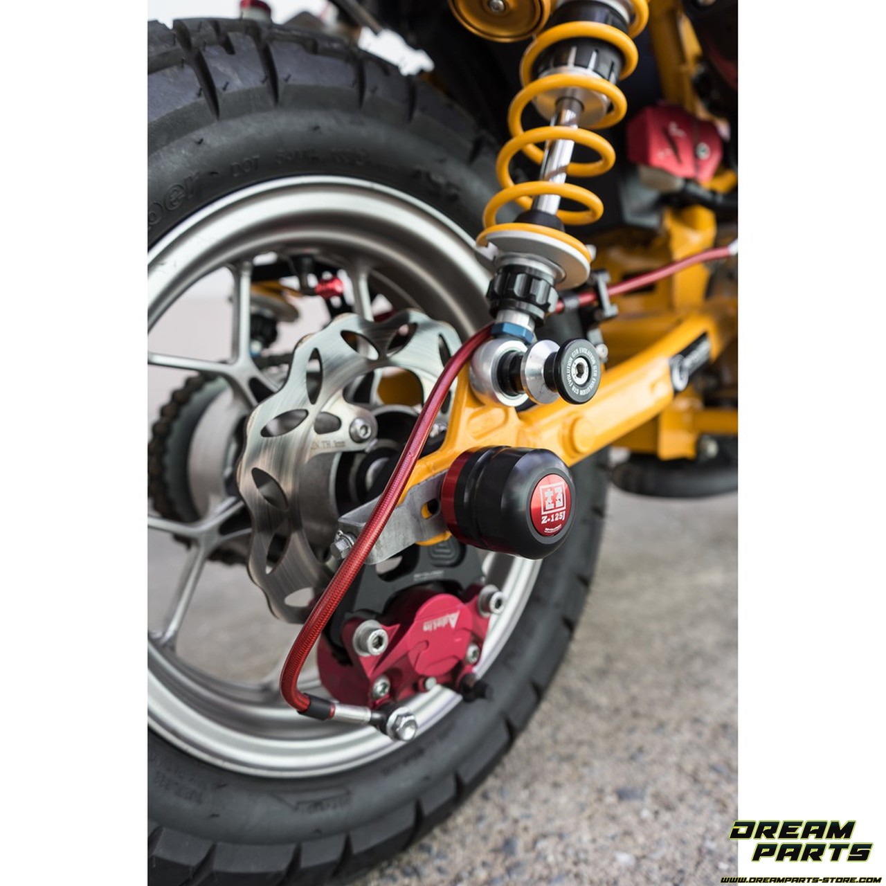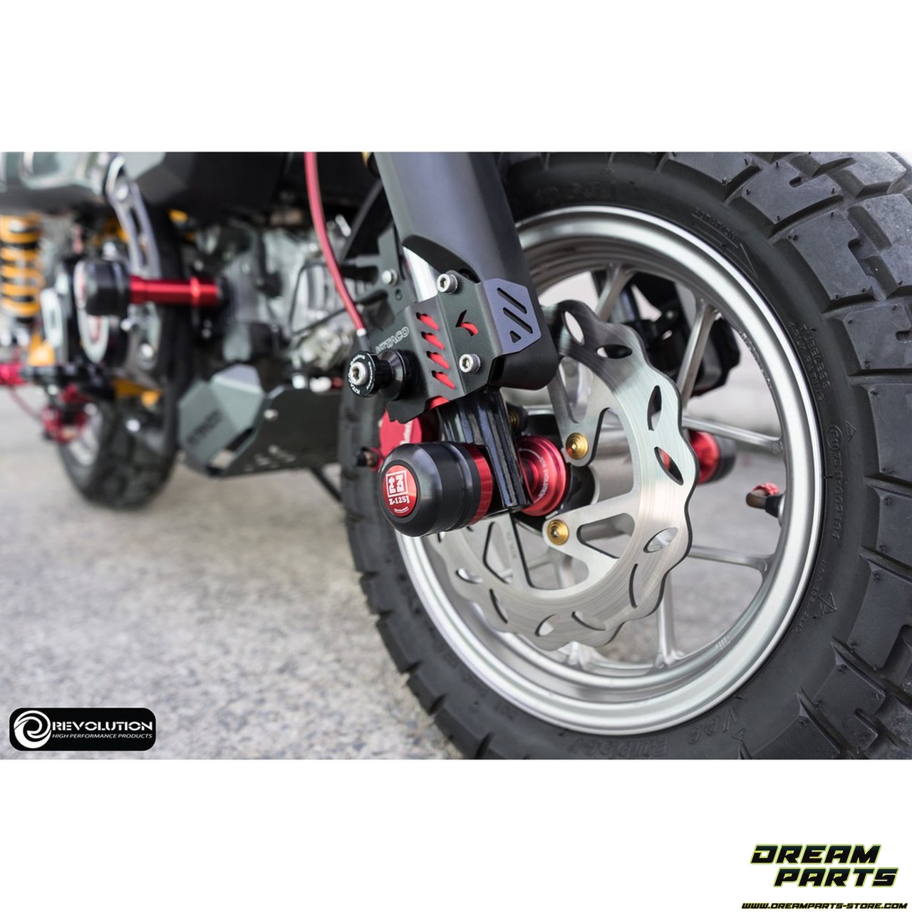 Paire d’axes de roues/tampons de protections pour Honda Monkey 125, modèles 4-5 vitesses. Disponibles en 5 coloris