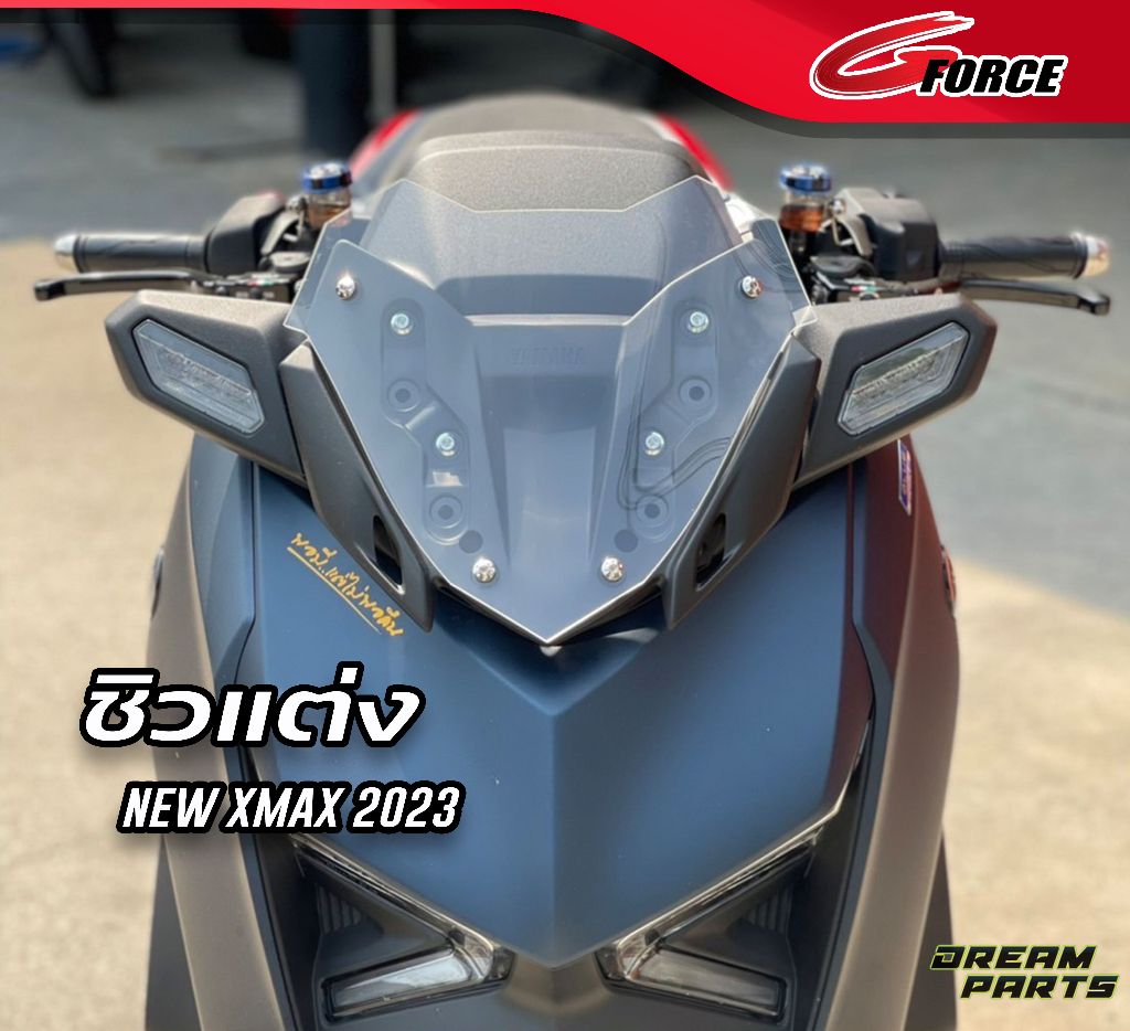 Bulle courte Gforce en acrylique découpé au laser, avec ou sans visserie inox, pour Yamaha Xmax 2023+. Disponible en plusieurs teintes.