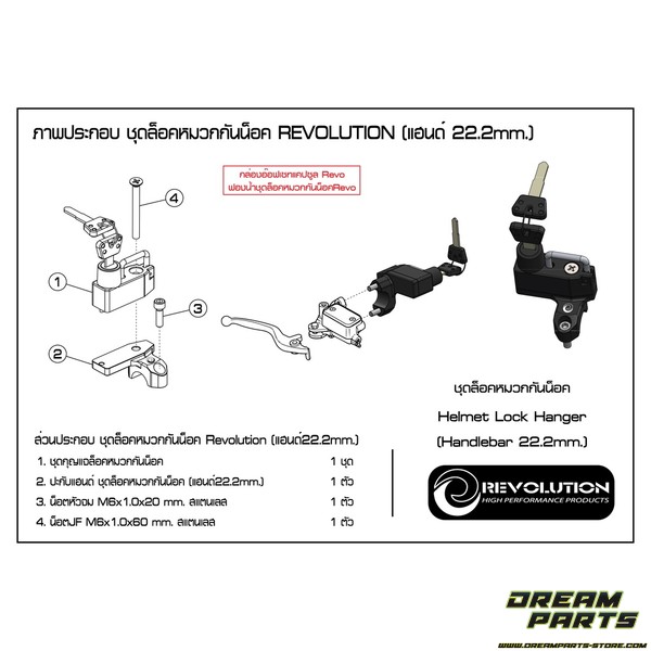 Cadenas de guidon GTR pour verrouillage de casque par exemple (pour tout guidon de 22.2 mm de diamètre).