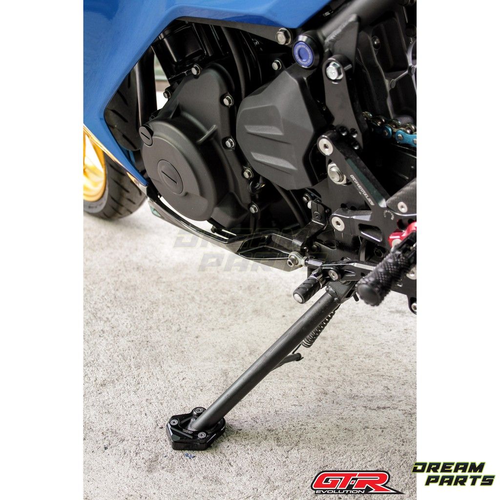 Coussinet/Patin de béquille latérale GTR en aluminium, pour Kawasaki Ninja 400. Disponible en plusieurs coloris.