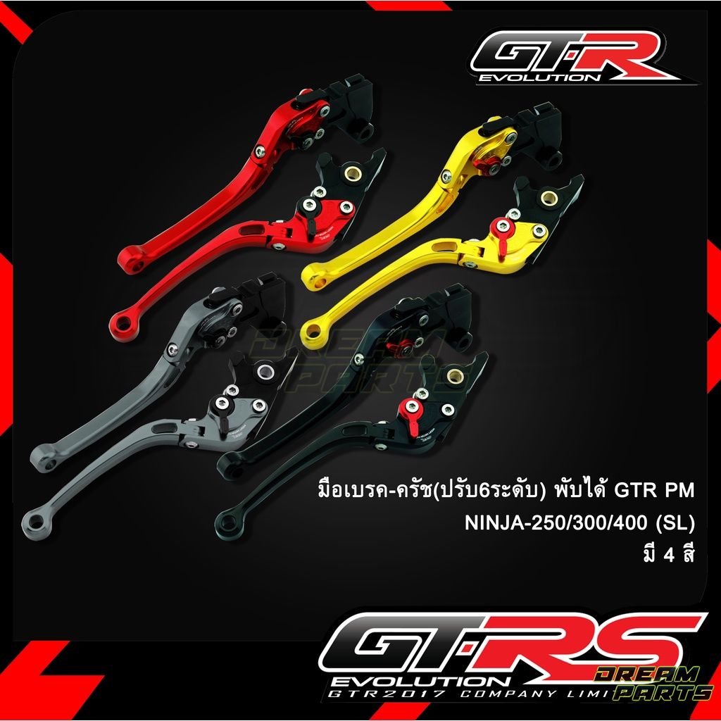 Pair of adjustable and folding GTR aluminum brake levers, for Kawasaki Ninja 400. Available in several colors.