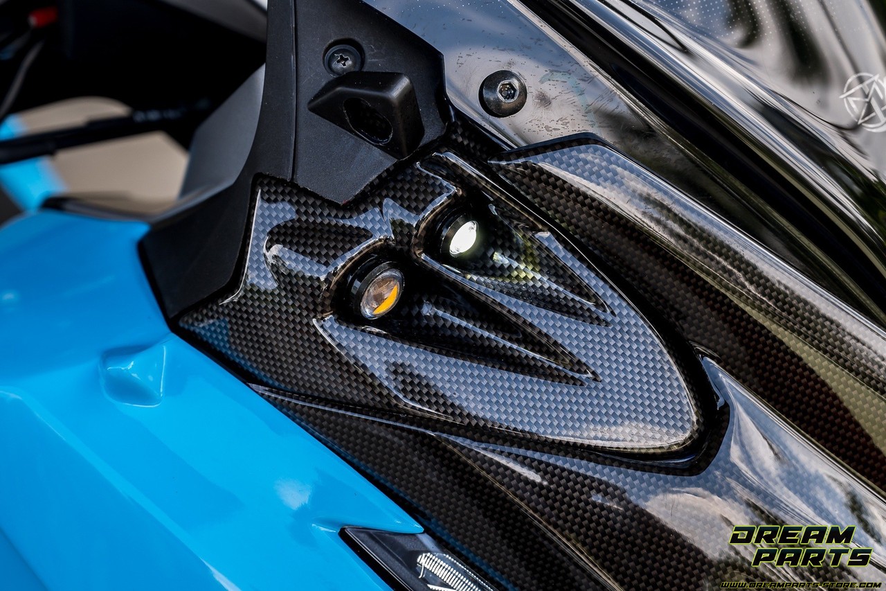 Paire d’obturateurs de rétroviseurs noirs, avec clignotants et veilleuses intégrées pour Honda Forza 125/350, phase 4 (2020+). Pièces non compatibles avec la version 2023+ (V5) du Forza 350. En remplacement des pièces d’origine Honda référence: 88215-K1B-T00ZA et 88215-K1B-T00ZA.