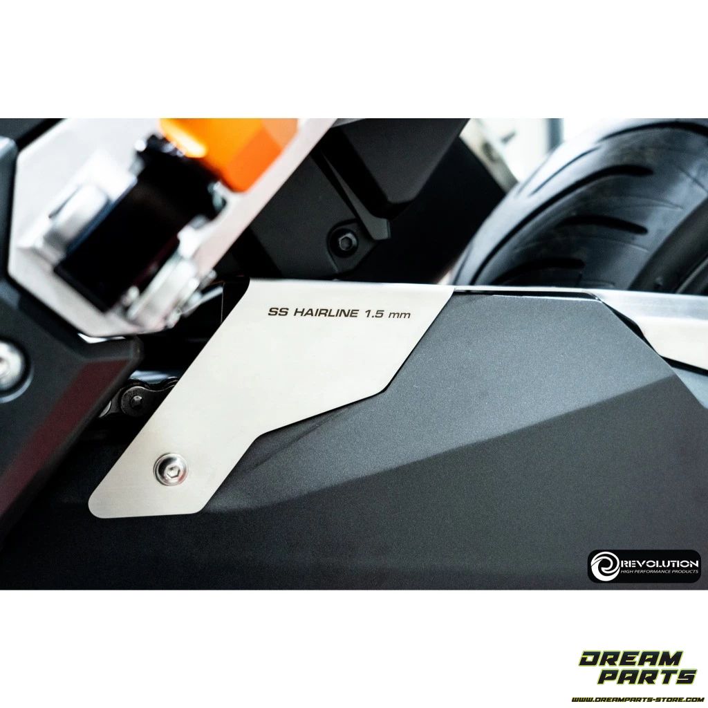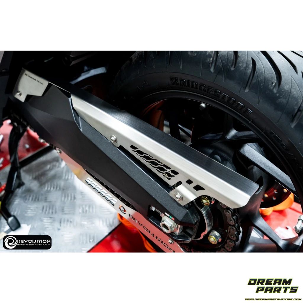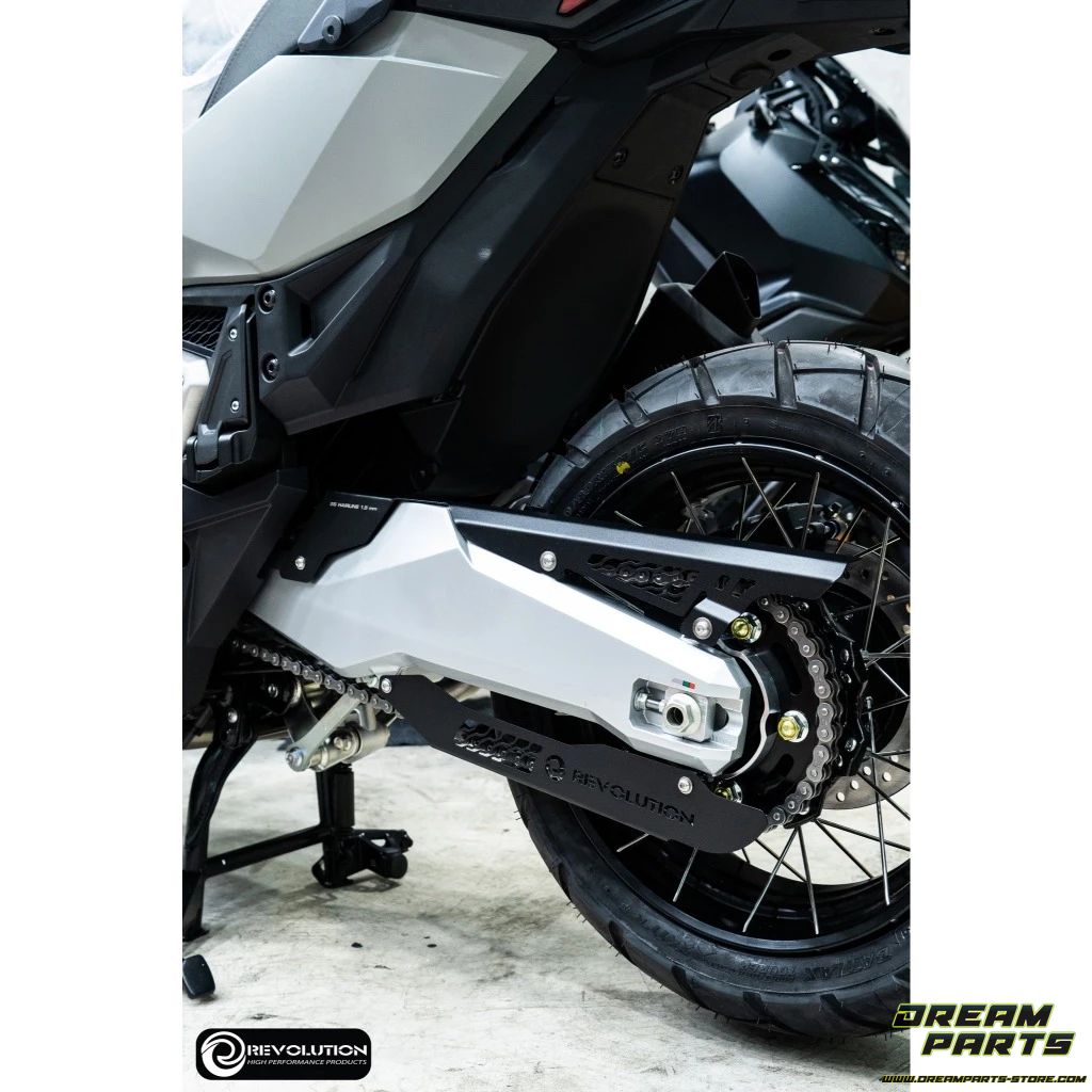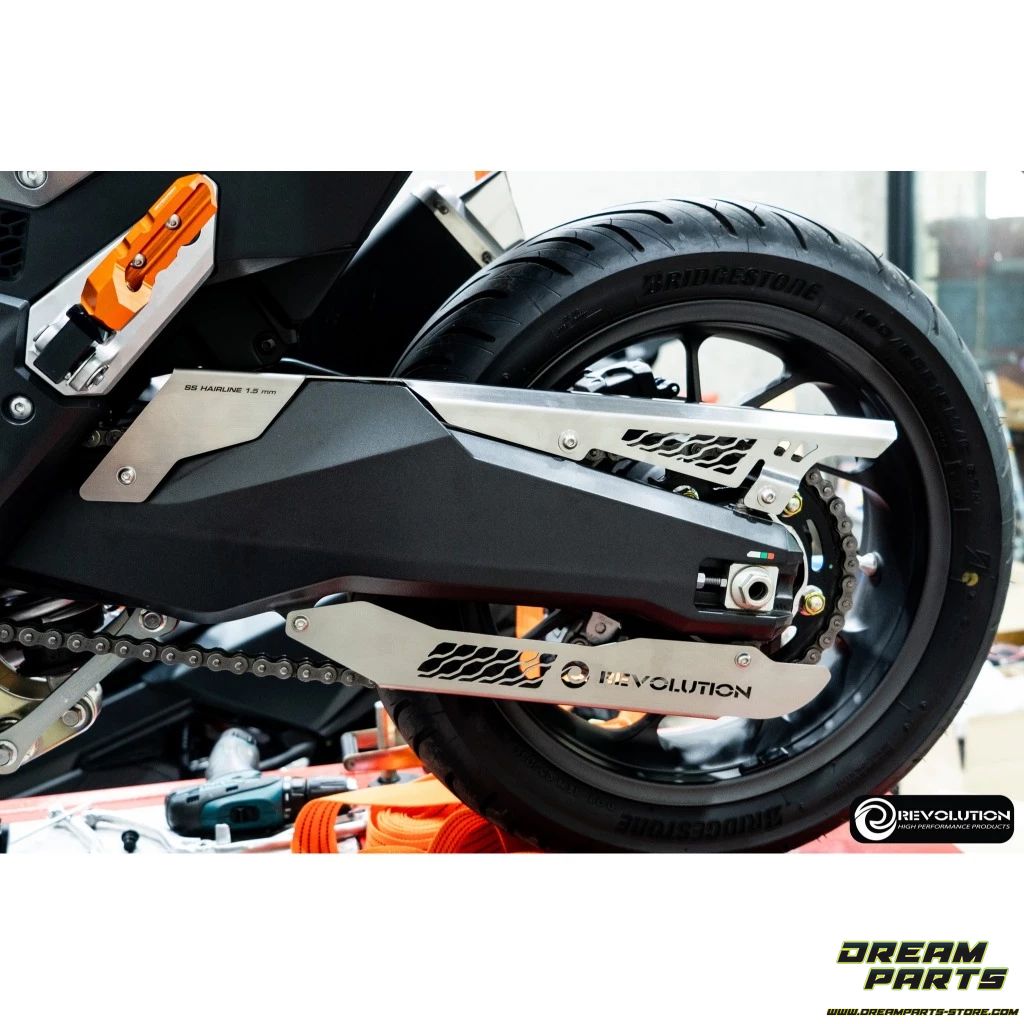 Protection de chaine Revolution en acier inoxydable, disponible en plusieurs coloris, pour Honda Forza 750 et X-ADV 750.