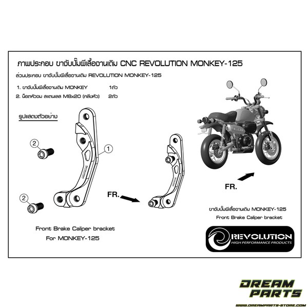 Support d’étrier de frein avant Revolution pour étrier Brembo 2 Pot, pour Honda Monkey 125 et Dax 125 (JB04).